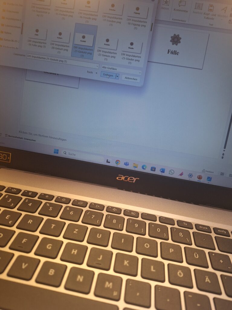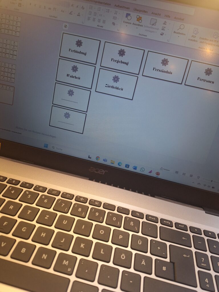 Nachdem ich im Januar stolz auf meine Impulskarten gewesen bin und sie dann doch einem Verlag vorstellte und in der Schlussabstimmung leider, wieder, verlor, hab ich mich entschieden, es allein zu machen und die Karten selbst raus zu bringen. Und zwar als online-Produkt, damit ich den Kunden-Endpreis niedrig halten kann. Leider stellte mich das im März wieder vor große technische Herausforderungen und der Start musste erneut verschoben werden. Ich habe es mir fest vorgenommen in 2026 irgendwie hinzubekommen, nach dem Motto „better done than perfect“.
