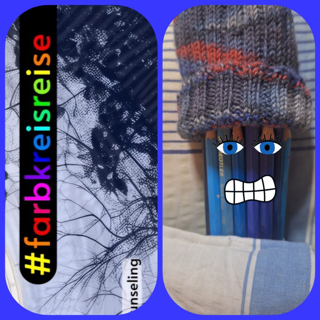 Mit meinem Onkel habe ich seinen 88sten Geburtstag gefeiert! Einschließlich seines Lieblingskuchens: Frankfurter Kranz. Hätt ich gewusst, dass es das letzte Mal sein wird, hätt ich wohl auch an ein Foto gedacht-seufz. Meine kleine Kreativzeit hatte ich im Mai 2025 mal wieder durch Susanne Heinen. Im Mai hab ich die Farbkreis-Reise mit der Farbe blau mitgemacht.