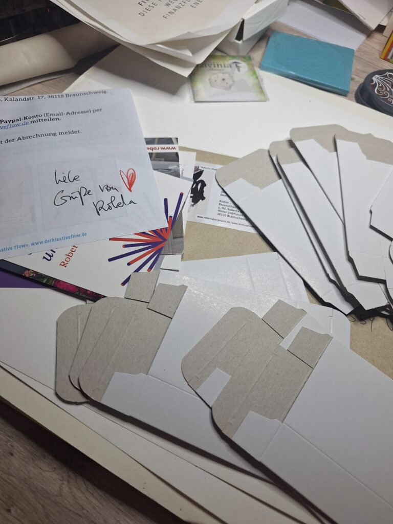 Der Juli brachte aber auch ein neues Projekt: Ich bekam einen Platz im Schachtelkunst-Projekt von „Der kreative Flow„. Aber auch diese Teilnahme sollte erst einmal brach liegen.