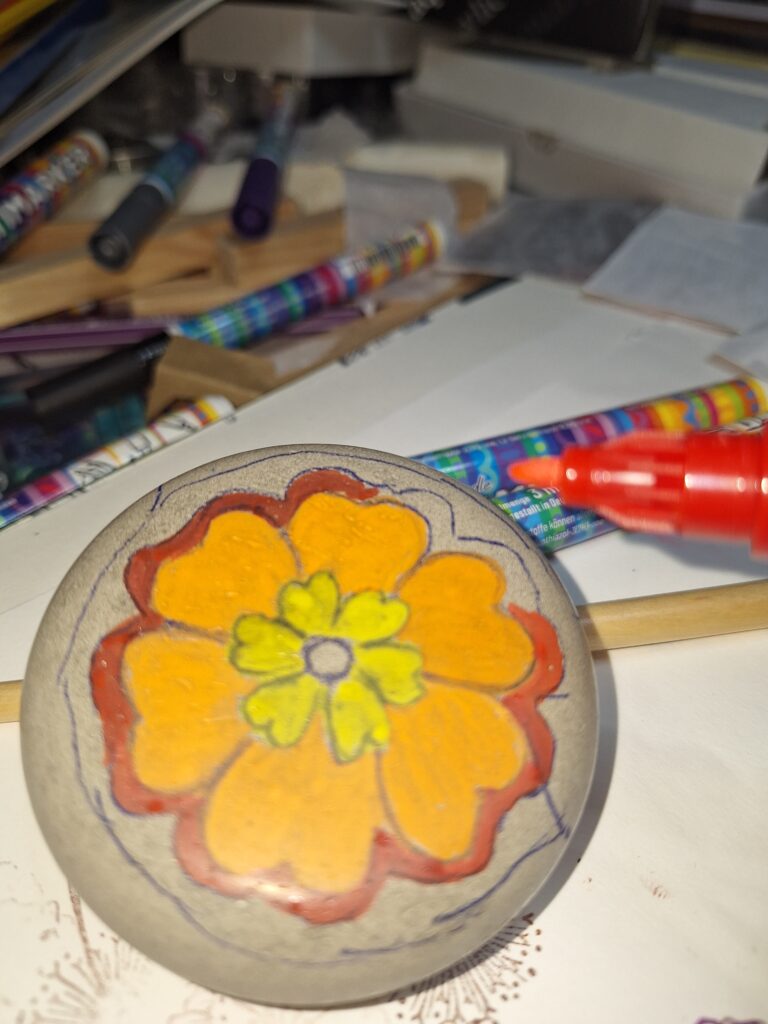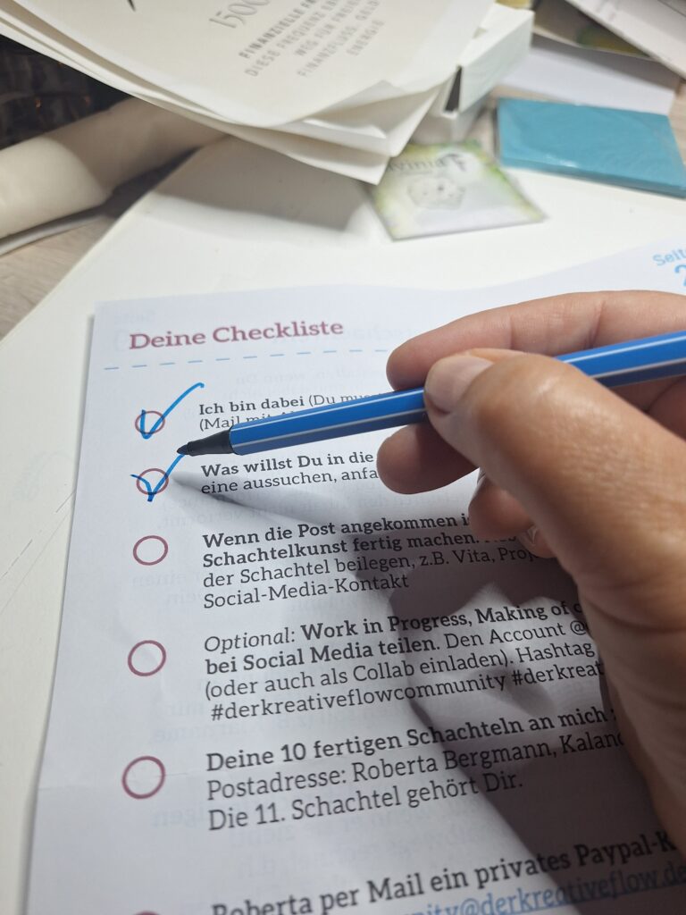 Roberta, Inhaberin von Der kreative Flow, lud zu einer neuen Idee ein: Die Skizzenbuch-Reise. Ich bekam auch hier gemeinsam mit weiteren über 100 TeilnehmerInnen einen Platz und erwarte das Buch irgendwann im Februar 2026, um meinen Beitrag dort zu verewigen.