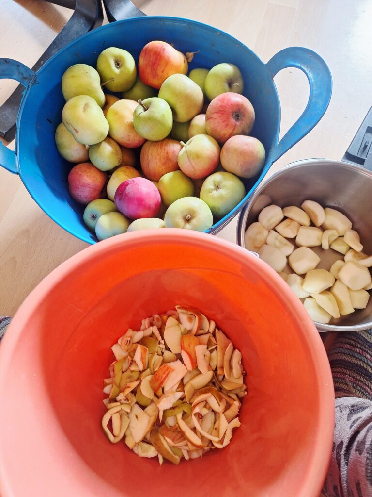Im Oktober gab es die dritte Apfelernte und ich habe viel Apfelmus gekocht.